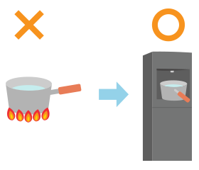 フレシャスのウォーターサーバーがあれば、いつでも冷水と温水が使えるので、調理時間の短縮になります。たとえば朝食の際に、カップスープやコーヒーのお湯を沸かすひと手間がなくなります。また、カレーや鍋料理などでも、お湯を沸かす時間が省け、夕食準備が時短になります。料理途中でお湯や水が「ちょっとだけ足りない」というときにもすぐ足せて便利です。火を使わないので、小さなお子様や高齢者、一人暮らしの方の簡単な食事を用意するときにも大活躍。もちろん、多忙な共働き世帯にとっては強力な味方になるでしょう。