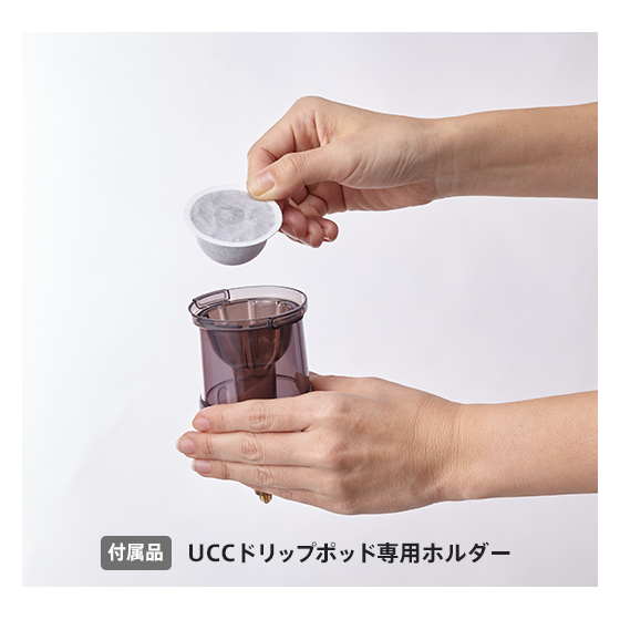 UCCのドリップポッドや、市販の挽いた豆(粉)を入れたホルダーを、ウォーターサーバーに取り付けるだけ。抽出後は、外して後片付けも簡単。ホルダーはそのまま洗えるので、いつでも衛生的な状態を保ちます。
