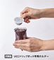 独自開発されたドリップポッドのこだわりは、「蒸らし」「お湯の温度」「抽出スピード」。プロのハンドドリップの味わいを再現するためのUCCのノウハウが詰め込まれています。