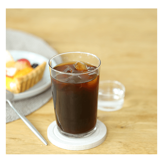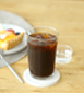 たっぷりの氷をいれたグラスに、湯量少なめで濃く抽出すれば、簡単アイスコーヒーの出来上がり♪