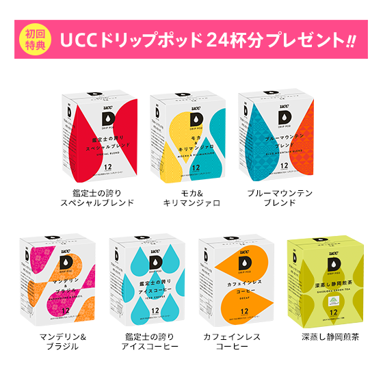 独自開発されたUCCドリップポッドは様々なコーヒーの種類に加え、紅茶や緑茶まで豊富なラインアップ。またお好きな挽いた豆(粉)も使えるので、こだわりの1杯も楽しめます。