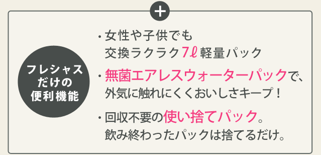 ※コックから水がでなくなりましたら、ウォーターパックの交換目安です。